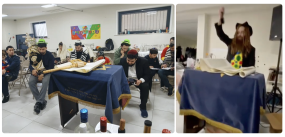 Bright and early the next morning, 40 students and staff filled the classroom at Forest Hills High School for serious Purim fun (no normal footage, but you get the idea 🤦🏻♂️).